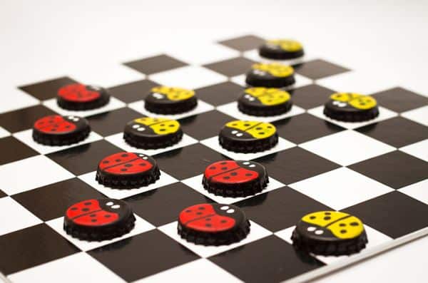 Jogo de dama com tampinhas