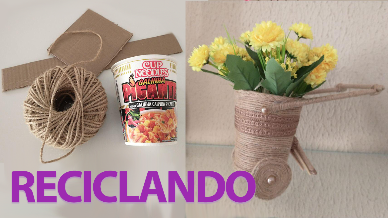 Este é mais um vídeo de reciclagem, hoje transformamos um copo de cup noodles em um bela carriola com flores amarelas. Tudo bem simples e fácil. Espero que gostem!