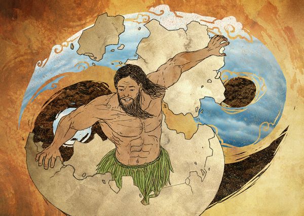 No começo não havia forma, apenas um caos primordial — chamado Hundun — dentro de um ovo cósmico, onde Yin e Yang (as forças opostas do universo) se agitavam em desordem. Com o tempo essas energias alcançaram equilíbrio, e desse movimento nasceu Pangu.