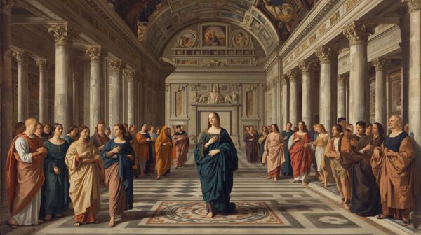 Rafael teve o cuidado técnico de usar figuras de sua própria época para representar os sábios da antiguidade. Isso demonstra que a busca pela verdade é uma constante que atravessa as eras, onde cada geração serve de alicerce para a próxima.