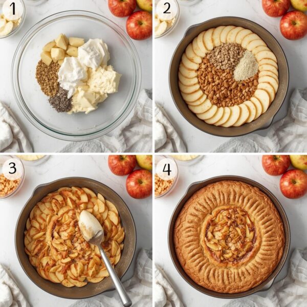Desligue o fogo e vire o bolo diretamente no prato. As maçãs estarão lindamente caramelizadas no topo, brilhantes e perfumadas. Essa é uma daquelas sobremesas que aquecem não só o corpo, mas também as lembranças.