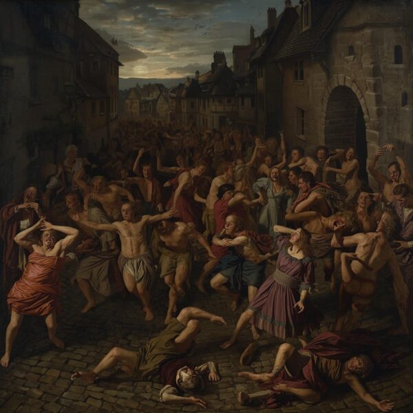 - Histeria Coletiva (Doença Psicogênica em Massa): A população de Estrasburgo vivia sob estresse extremo na época, enfrentando fome, doenças e crenças religiosas opressivas. A mente humana, levada ao limite, pode induzir estados de transe contagiosos, fazendo com que o pânico psicológico se manifeste fisicamente em multidões.