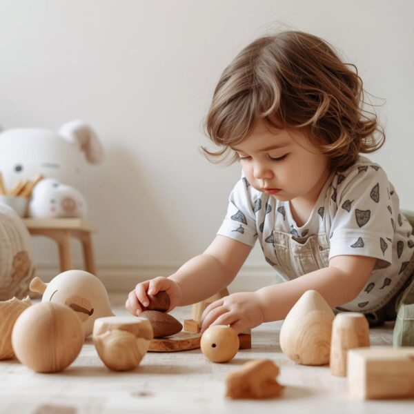 • O Poder da Madeira e da Lã: Brinquedos feitos de madeira orgânica, algodão puro e lã possuem temperaturas, cheiros e pesos diferentes. Empilhar blocos irregulares de madeira ensina à criança noções reais de gravidade, equilíbrio e proporção de uma forma que nenhum aplicativo consegue simular.