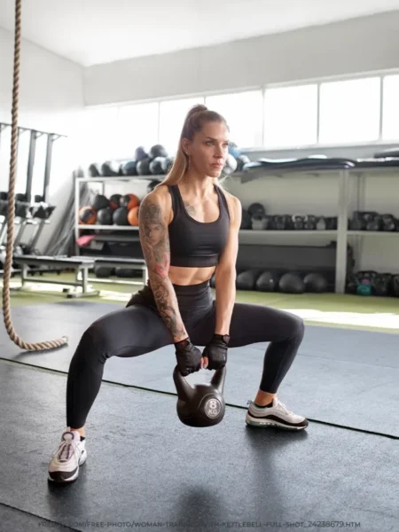 Com um afastamento maior dos pés, ele foca intensamente na parte interna das coxas e nos glúteos.